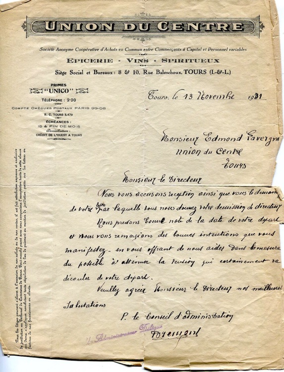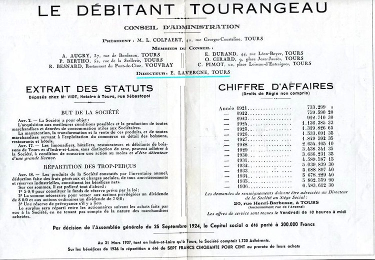 Il est ensuite appelé comme directeur pour la société "le débitant tourangeau"
