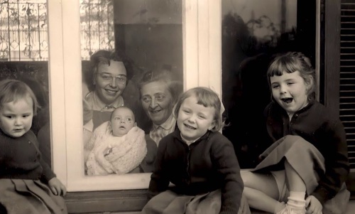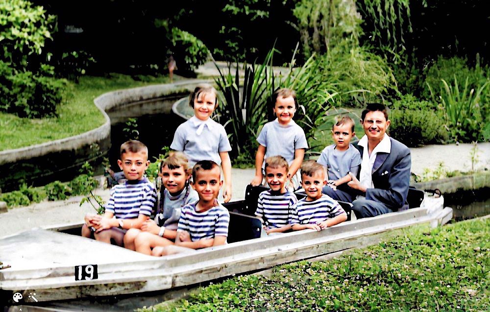 Pic du Midi - 1965 On reconnait : Pierre-Yves -Bruno - Totota - Florence sur capot - Christian - Véro - Jacques et la Pontiac