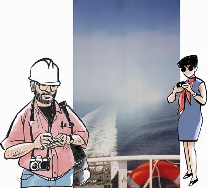 Graphiste et illustrateur, Pierre-Yves a aussi été marqué par ses nombeux voyages effectués en paquebots dans sa jeunesse. Il a partagé cet amour de la mer et des voyages avec Marie-Do.