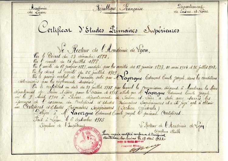 La période d'après-guerre a vu des efforts vers la reconstruction et la modernisation, l'éducation devenant un point focal pour reconstruire la nation. Ce contexte a probablement influencé la décision d'Edmond de poursuivre une carrière dans l'éducation en tant qu'Instituteur.