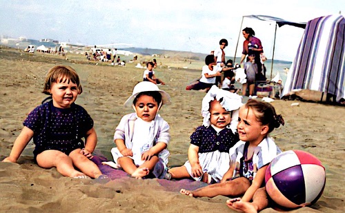 Pic du Midi - 1965 On reconnait : Pierre-Yves -Bruno - Totota - Florence sur capot - Christian - Véro - Jacques et la Pontiac