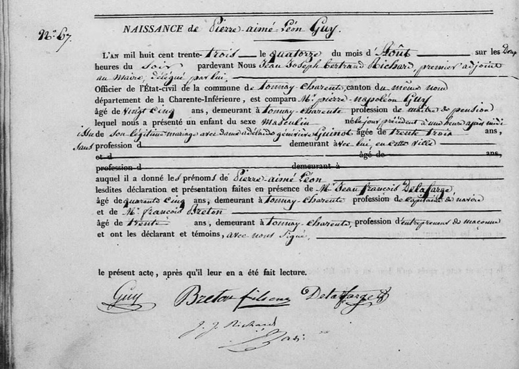 Acte de naissance de Pierre Aimé Léon GUY